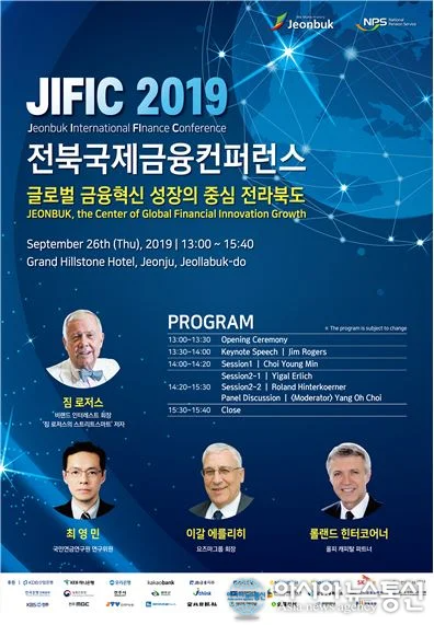 전북도와 국민연금공단은 오는 26일 전주 그랜드힐스턴 호텔에서 ‘글로벌 금융혁신 성장의 중심 전라북도’라는 슬로건을 걸고 ‘2019 전북국제금융컨퍼런스’를 개최한다고 20일 밝혔다.